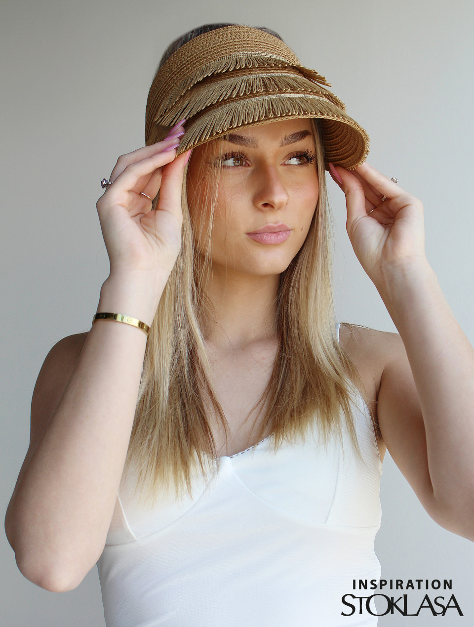 Dámský letní klobouk / slamák k dozdobení s třásněmi