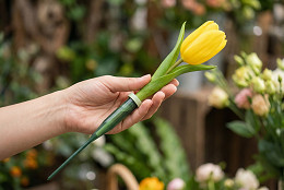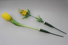 Floristická ampule se zápichem je praktický a diskrétní pomocník každého floristy či milovníka živých řezaných květin. Ampule umožňuje uchovat květy déle čerstvé díky systému zavlažování přímo ke stonku. Stačí naplnit ampuli vodou, nasadit na ni gumové fixační víčko, zasunout do něj květinu a zapíchnout do aranžmá, do věnců či různých dekorací. Víčko výborně těsní a zabraňuje vylití vody. Délka části, kam se zasouvá květina je cca 6 cm.