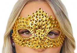 Designová škraboška vyniká leskem a zajímavým zpracováním. Je vyrobená z pevného plastu, který dobře drží tvar. Využijete ji jako doplněk na karnevaly, párty, večírky, divadelní představení nebo maškarní plesy. Gumička zajišťuje snadné a pevné uchycení na hlavě.