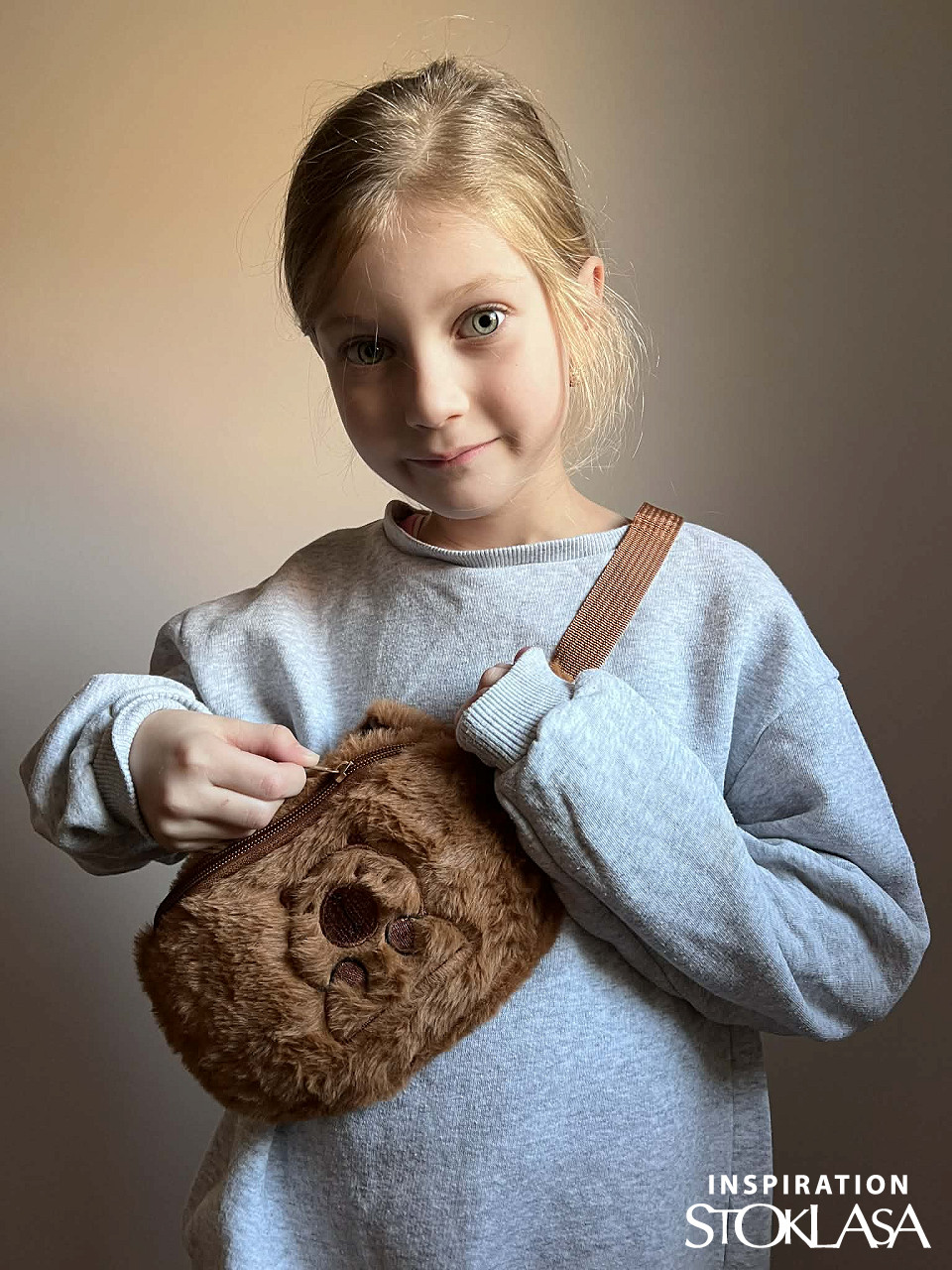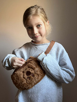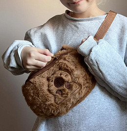 Chlupatá ledvinka s motivem kapybary je roztomilým módním doplňkem, který ocení především děti. Má praktické využití na procházce, pokud si vystačí jen se základním vybavením jako jsou klíče, mobil, kapesníky, peníze apod. Uzavírá se na zip, můžete ji nosit kolem pasu nebo křížem přes rameno. Bederní pás je nastavitelný, zapíná se na plastovou sponu.