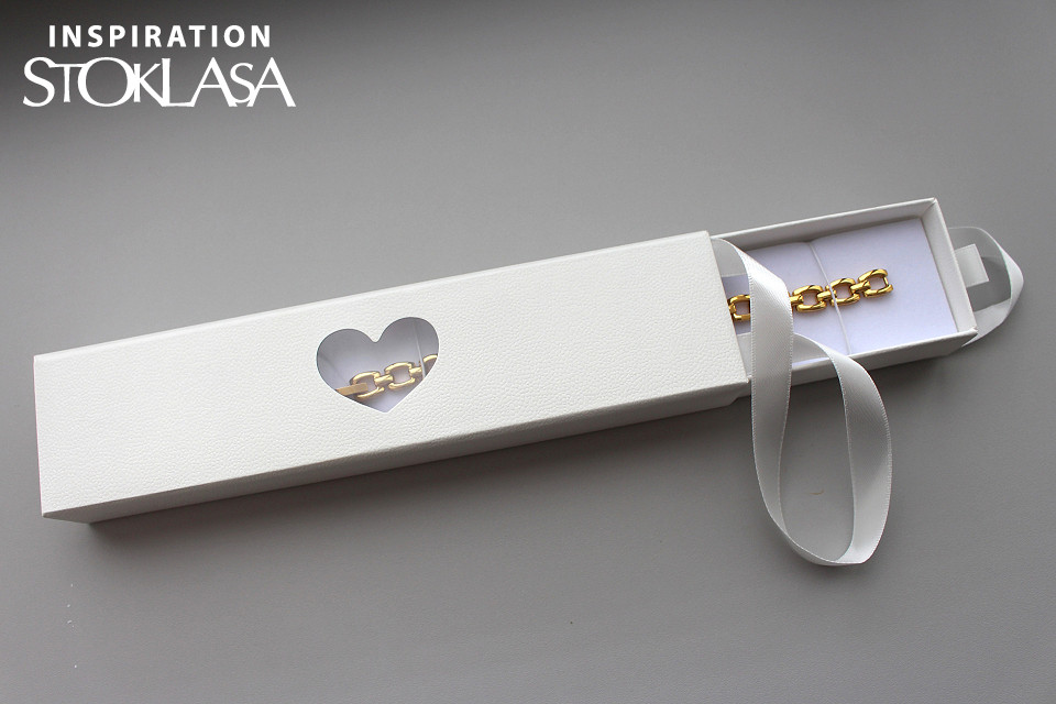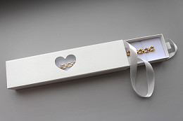 Krabička na šperky s průhledem srdce je velice elegantní. Využijete ji na darování náramku nebo hodinek. Díky průhledu je na dárek rovnou vidět, srdce je opatřené pevnou transparentní fólií. Uvnitř krabičky je molitanová výplň a pruženky na upevnění, která se dá vyjmout, krabičku tak můžete použít třeba i na jiný podlouhlý dárek. Je vyrobená z kvalitního, pevného materiálu a její design se srdcem okamžitě zaujme. Saténová ucha zajišťují snadnou manipulaci a přenášení.