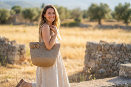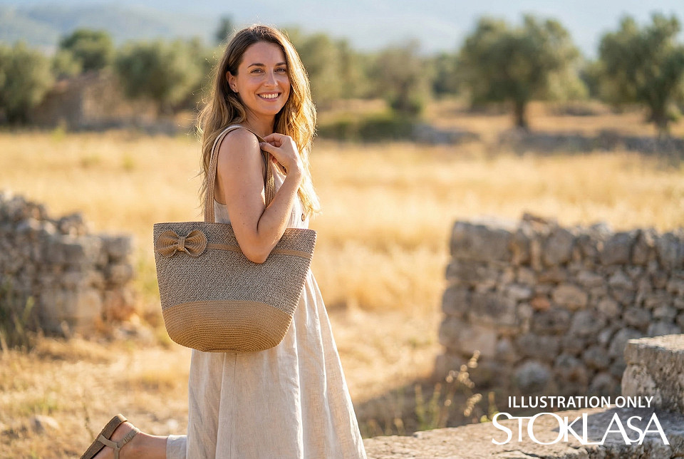 Z prostorné plážové tašky budete nadšení. Přední stranu má ozdobenou mašlí. Vynosíte ji k vodě, na pláž, ale klidně i do města, na nákup a pro další volnočasové aktivity. Zapíná se na zip, uvnitř má podšívku s malou kapsou na drobnosti. Kombinace přírodní a barevné papírové příze vytváří zajímavou strukturu. Dno je oválné, ucha jsou na nošení v ruce, dostatečně dlouhé i na rameno.