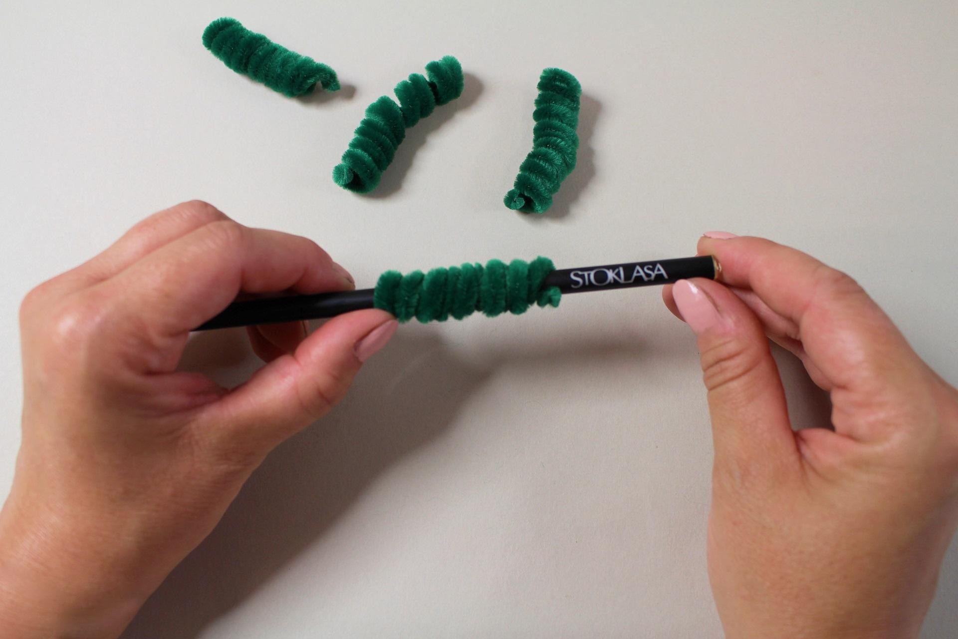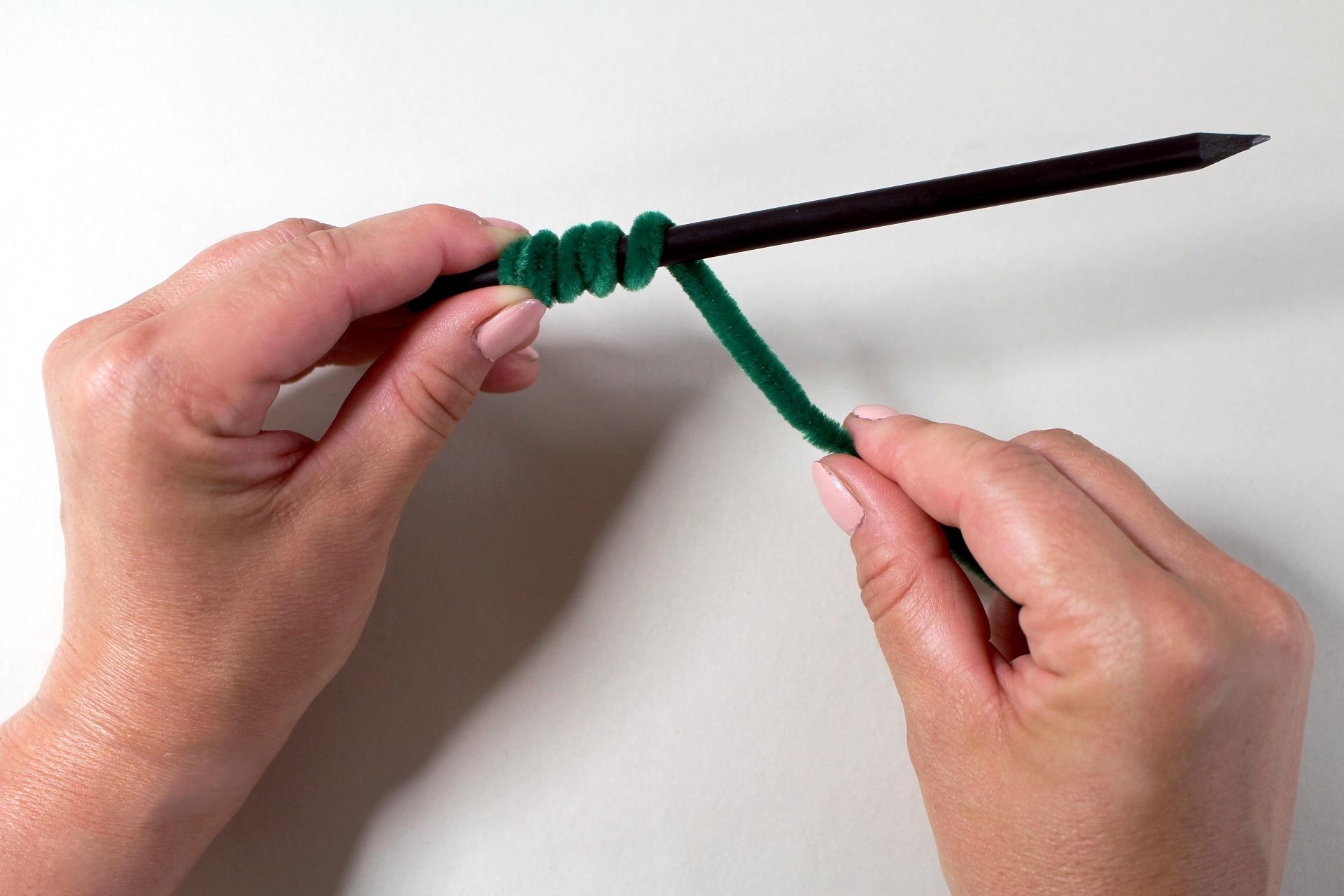 1. Namotáme chlupatý drátek na tužku nebo propisku tak, aby vznikl hustý malý váleček. A sundáme ho z tužky.