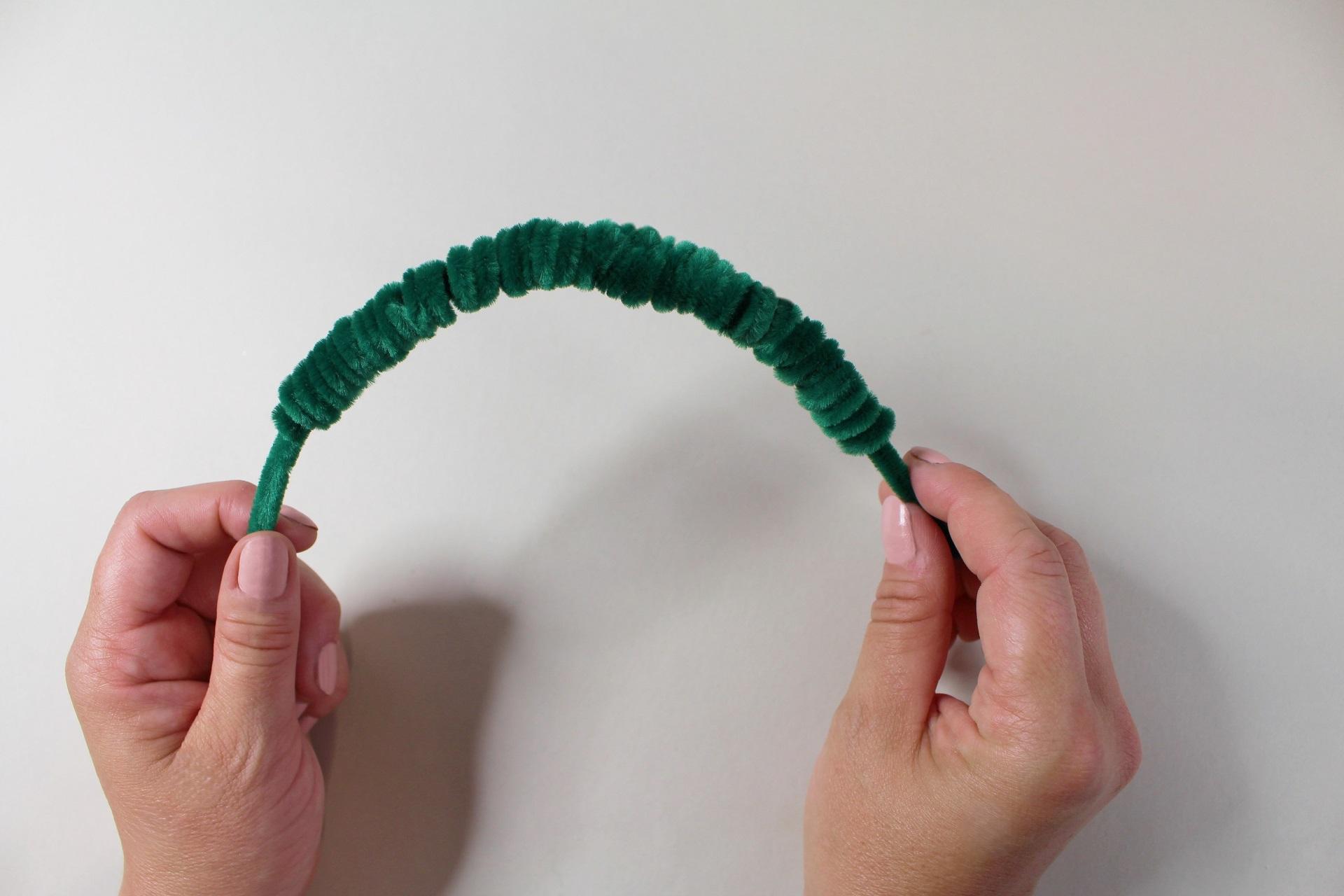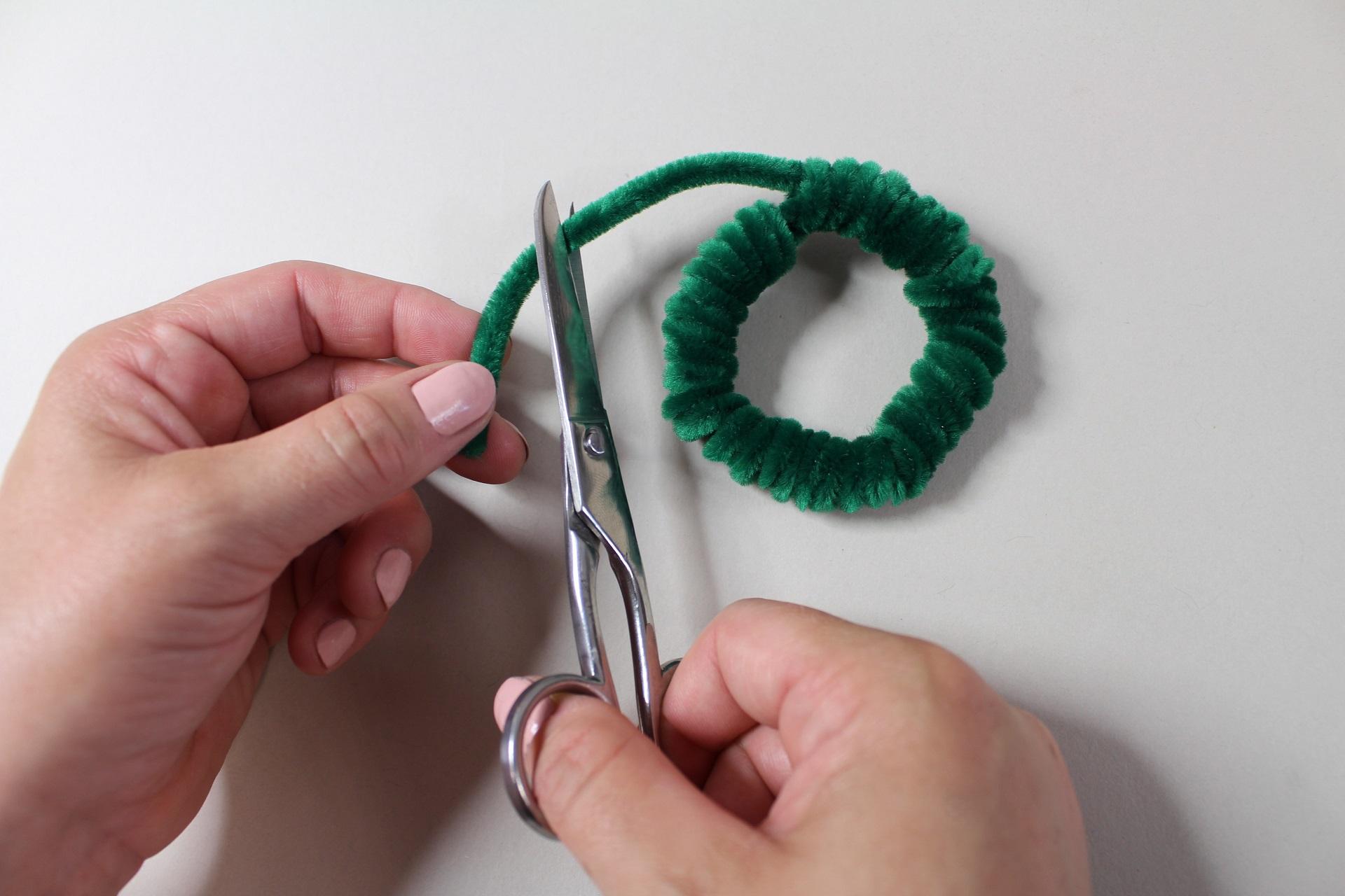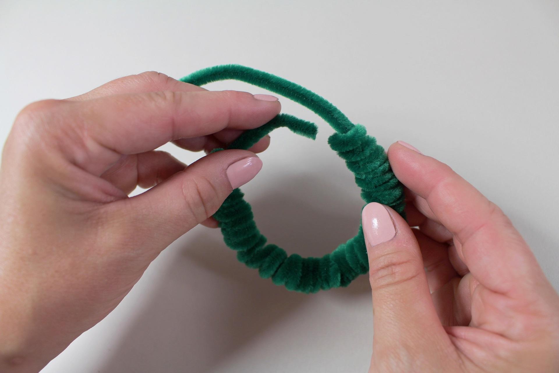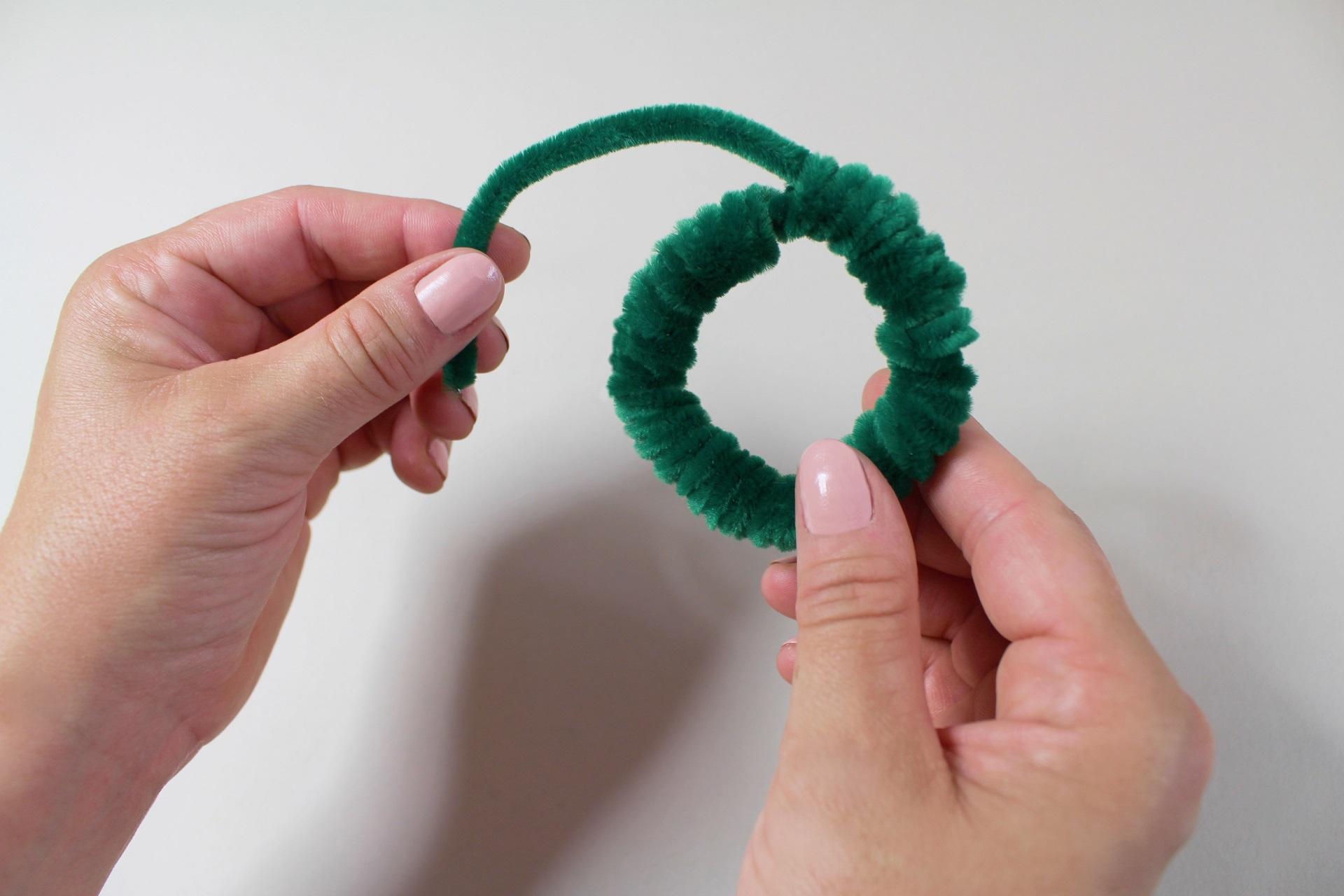3. Připravíme si silnější chlupatý drátek jako základ věnečku (může být jeden silný nebo dva tenké stočené dohromady).