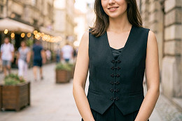 Textilní zapínání s korálky se skládá ze dvou dílů. Svým zpracováním připomíná elegantní sutaškový šperk. Zapínání je vhodné na vesty, kimona, svetry, šaty, ale třeba i pouzdra.