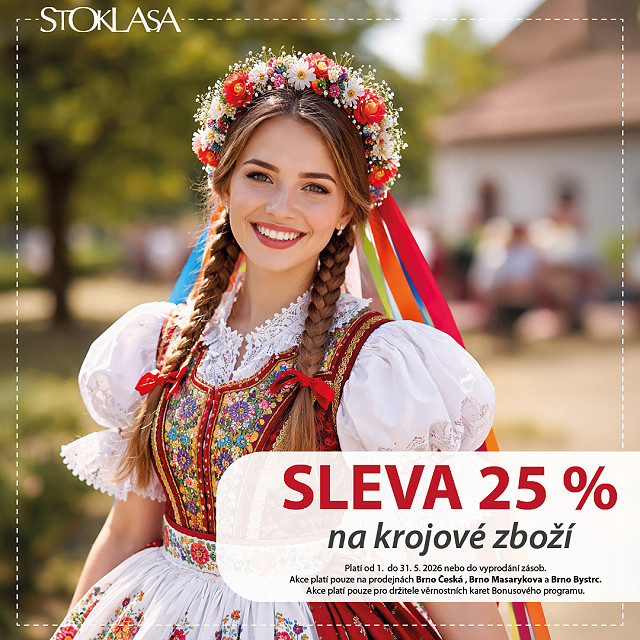 Sleva 25 % na veškeré krojové zboží. Akce platí pouze na našich brněnských prodejnách.