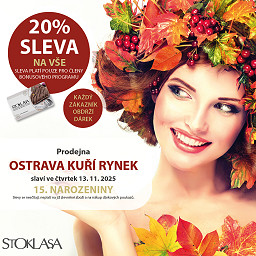 | Prodejna Ostrava Kuří rynek slaví 15. narozeniny! | ![]() | Oslavte spolu s námi 15. narozeniny prodejny Stoklasa - Ostrava Kuří rynek! Čeká na vás 20% sleva a dárek k nákupu! | 13. 11. 2025 - 13. 11. 2025 | Číst více |