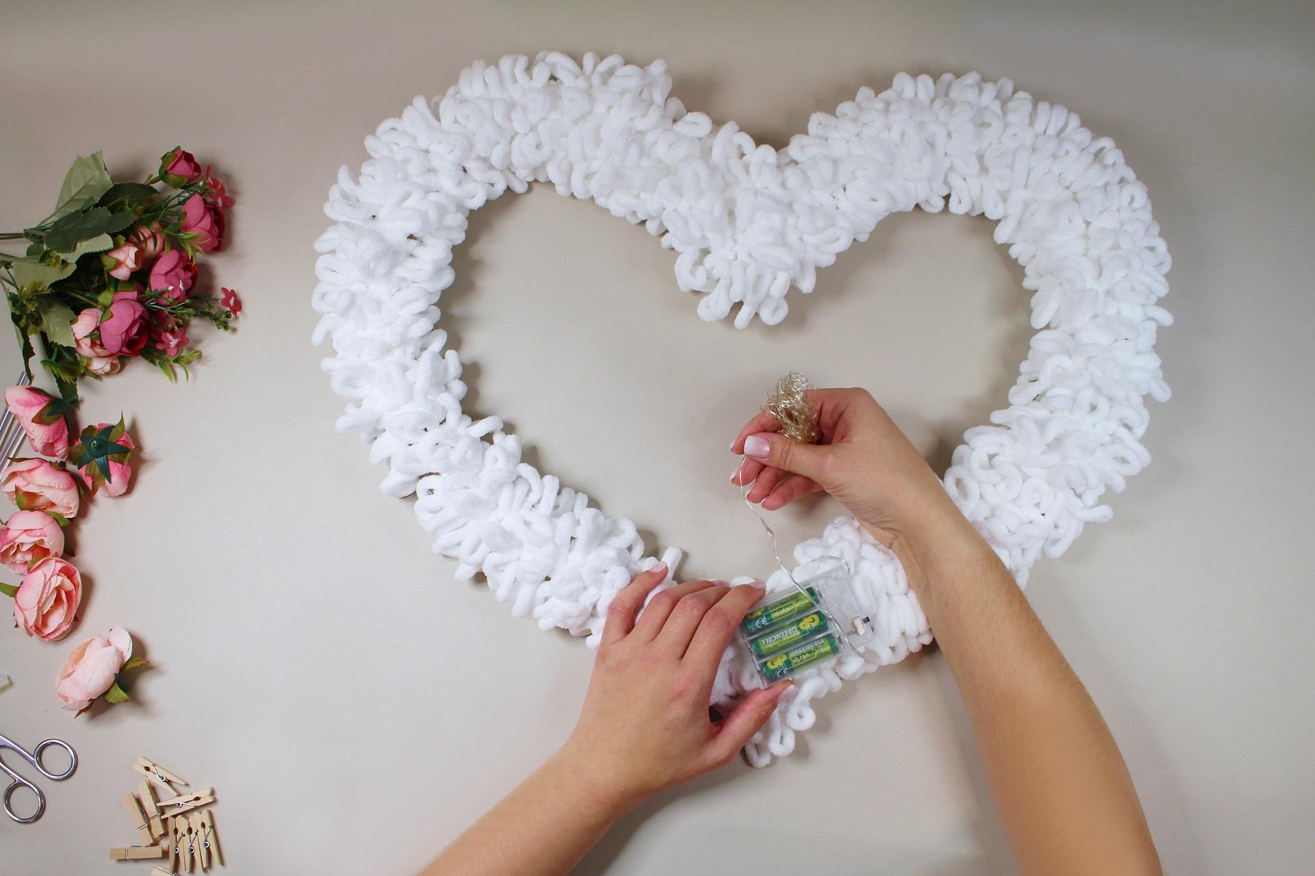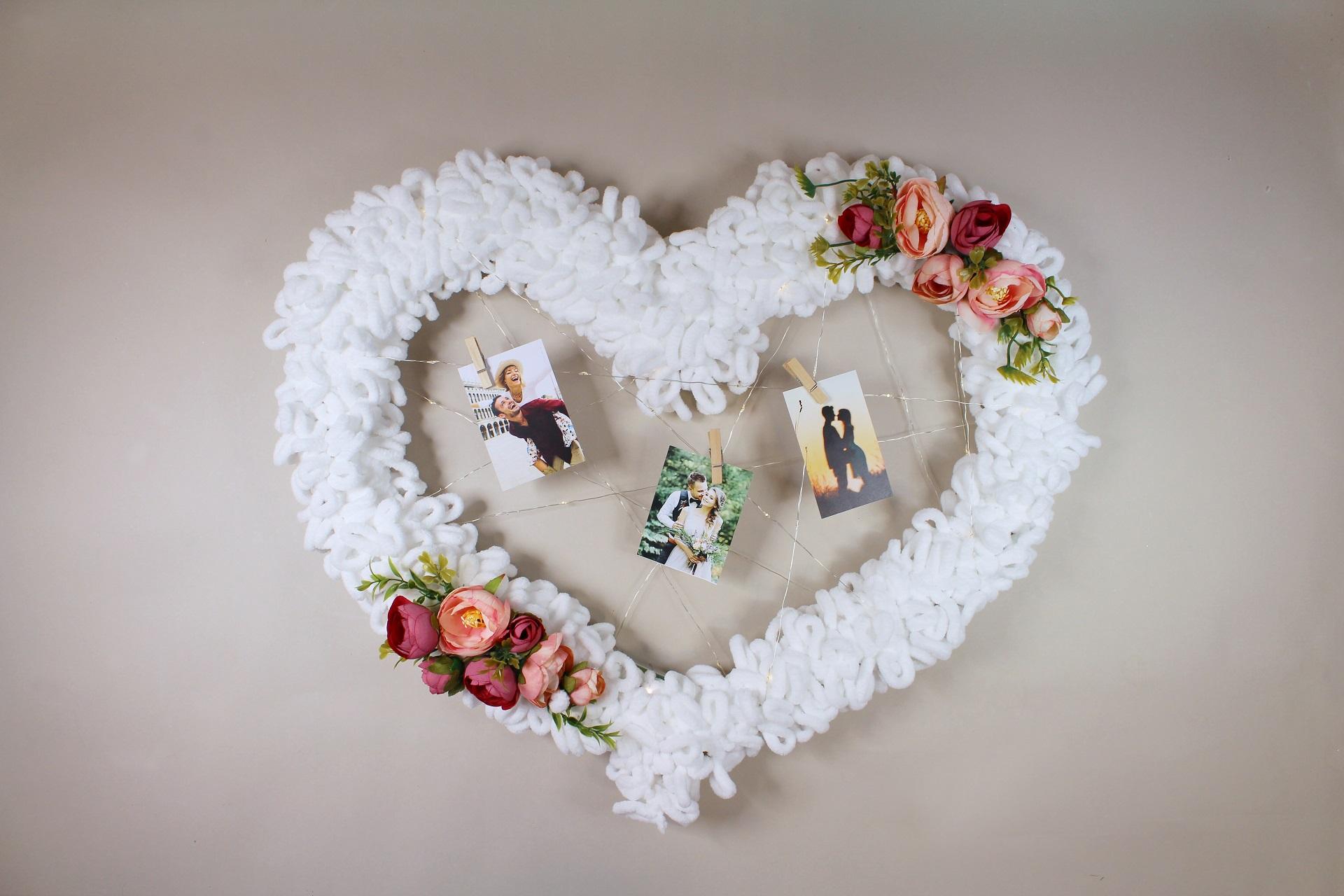 Lásku někdy nejlépe vyjádříme dárkem od srdce. Jemná dekorace z příze doplněná květinami potěší k Valentýnu, svatbě nebo jen jako malé vyznání „z lásky“. Vytvořte si romantické srdce i vy snadno a s radostí! Protože ručně vyrobený dárek řekne někdy víc než tisíc slov.