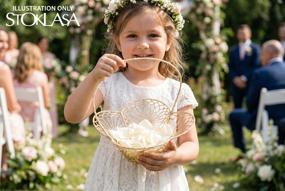 Svatební košíček je působivým doplňkem pro malé i větší družičky, které s jeho pomocí vytvoří nezapomenutelnou atmosféru při obřadu. Jemné pletení dodává košíčku romantický vzhled. Uvnitř se budou vyjímat plátky růží nebo květinová aranžmá.