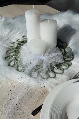 Široká tylová stuha je po celé délce ozdobená stříbrnými puntíčky, díky kterým se elegantně třpytí. Je oboustranná, velice poutavá, tyl dodává stuze vzdušnost a lehkost, což ji činí ideální pro různé dekorační účely. Použití: Stuhu využijete při různých slavnostních příležitostech (například na svatbě) jako dekoraci na židle, stoly, auta, manžety květin apod. Můžete z ní vyrobit i jednoduché mašle, stuha dobře drží tvar. Je také vynikající na balení dárků, kterým dodá luxusní vzhled.
