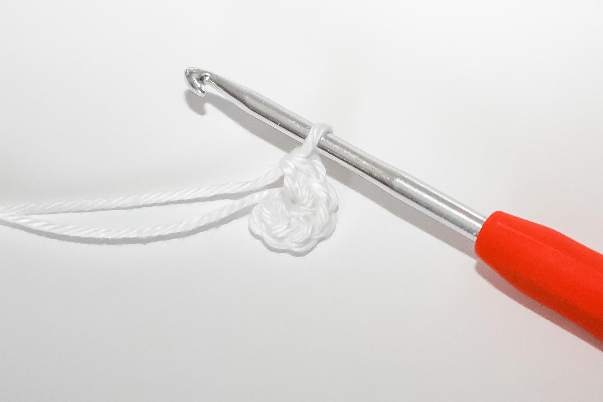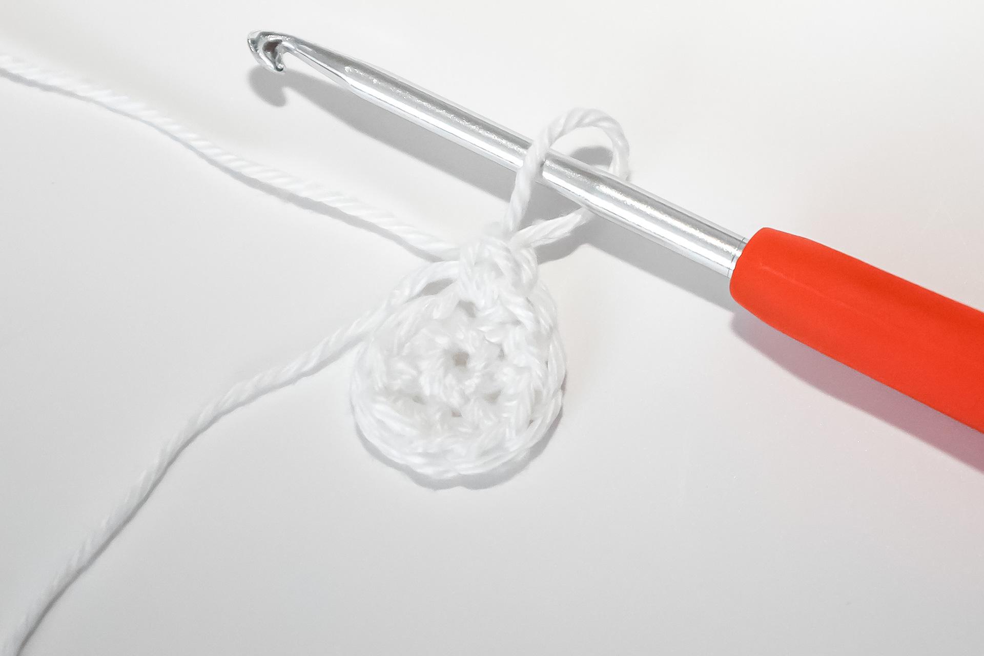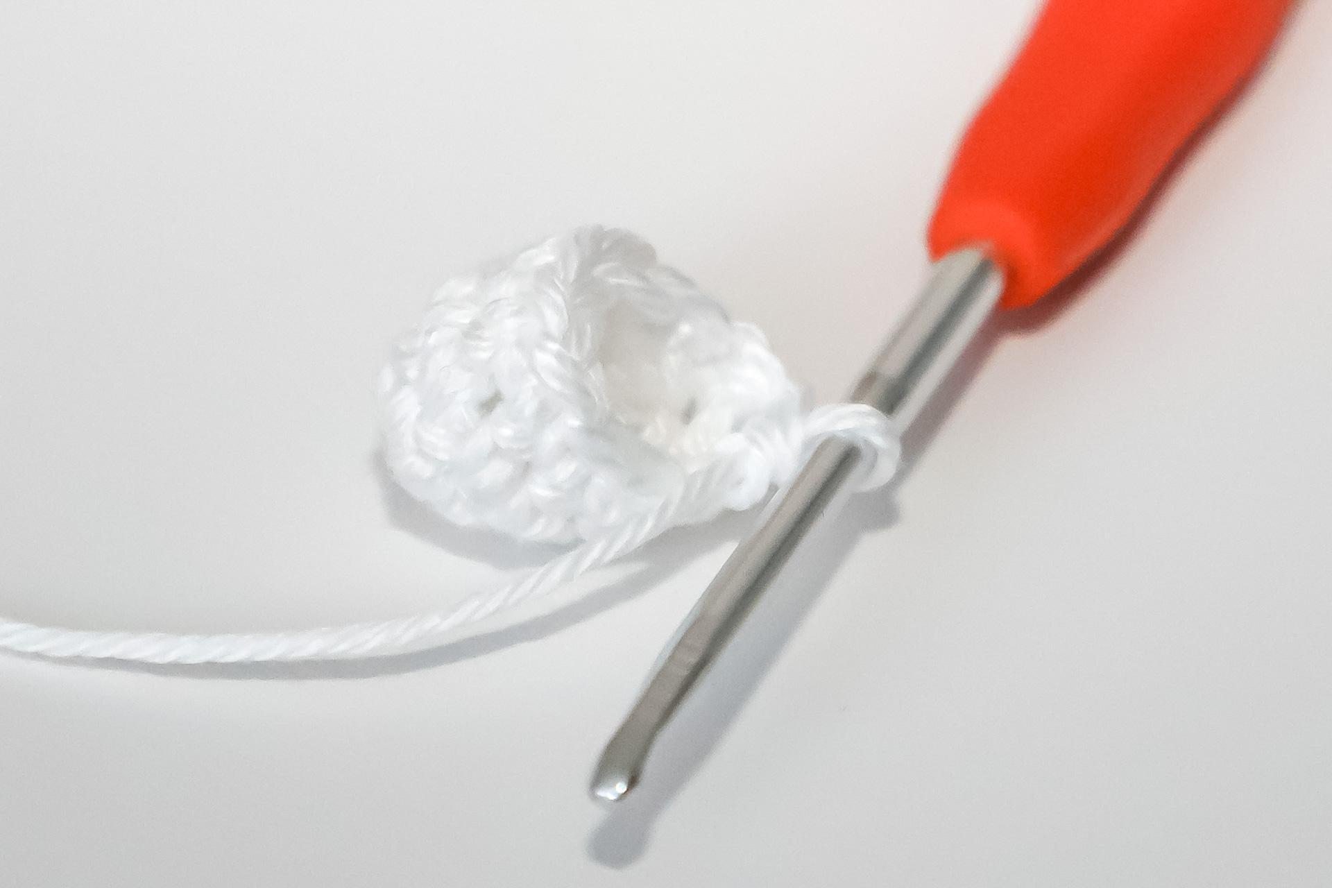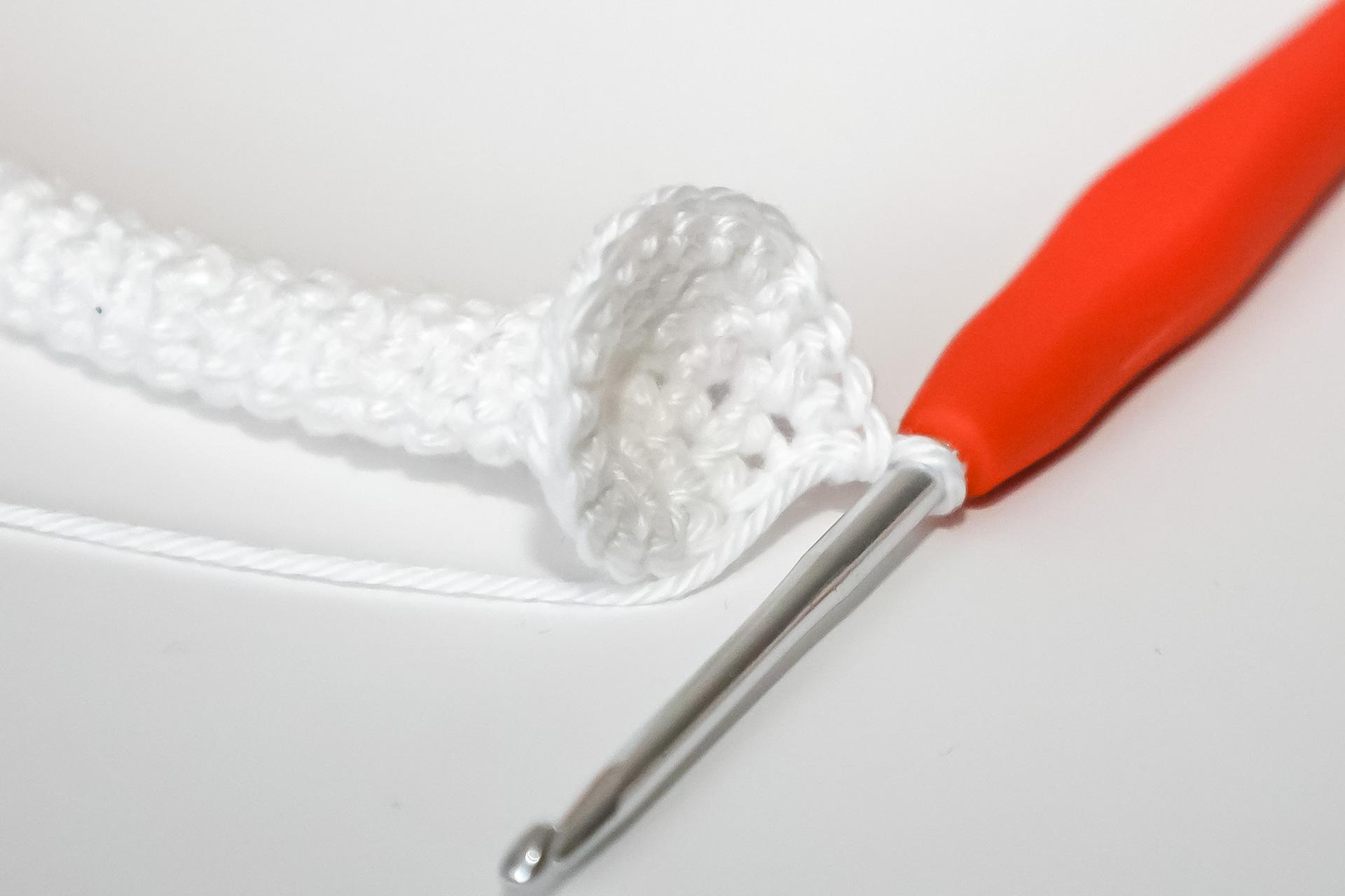 V- do jednoho oka háčkujeme 2KS