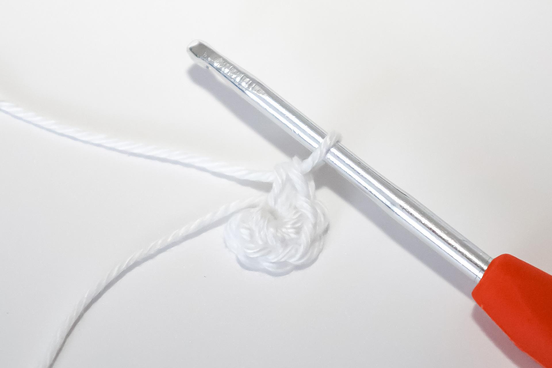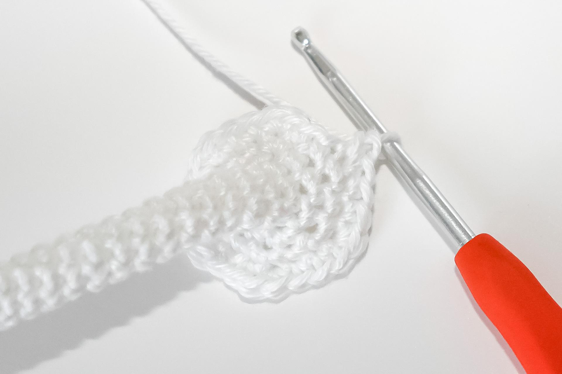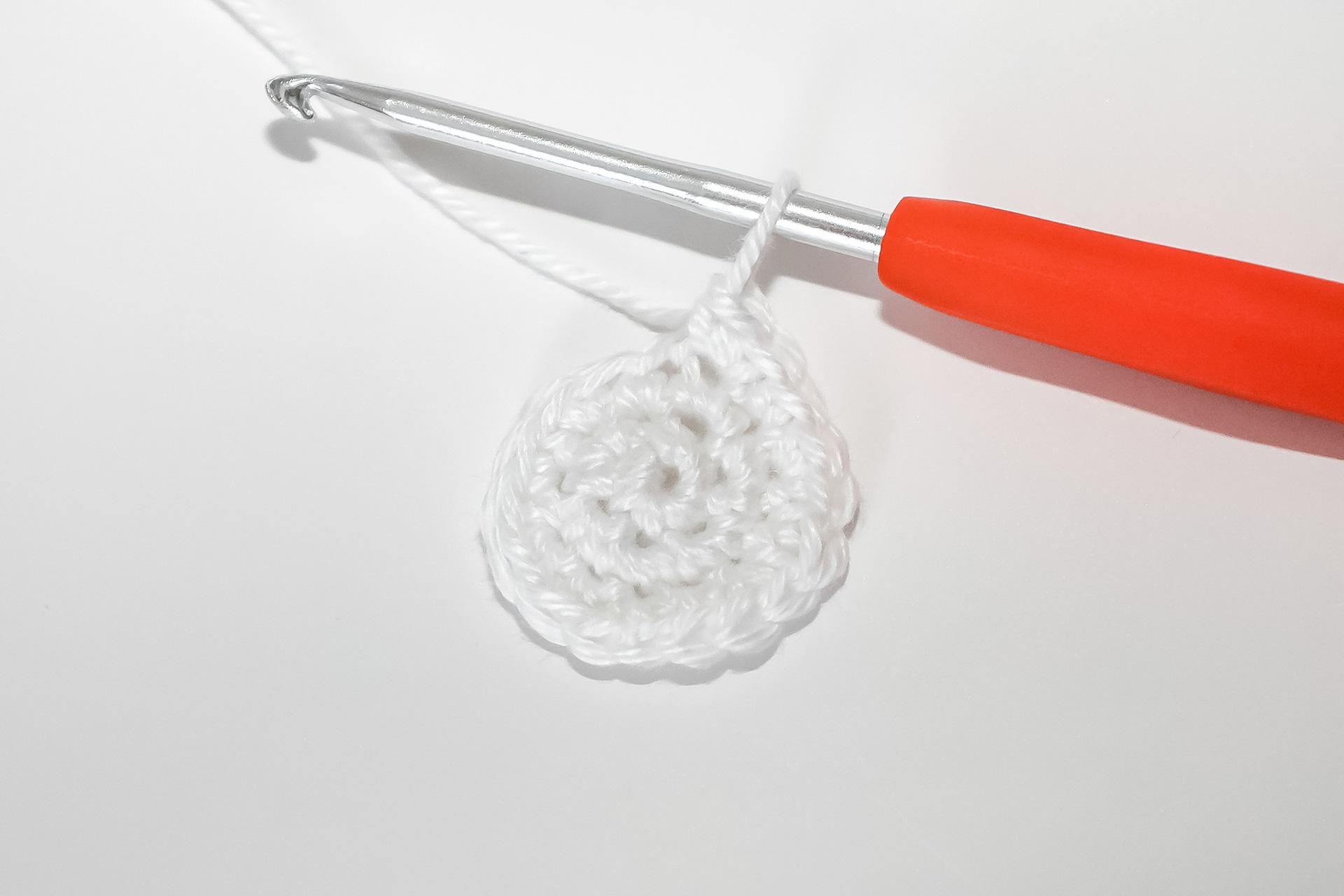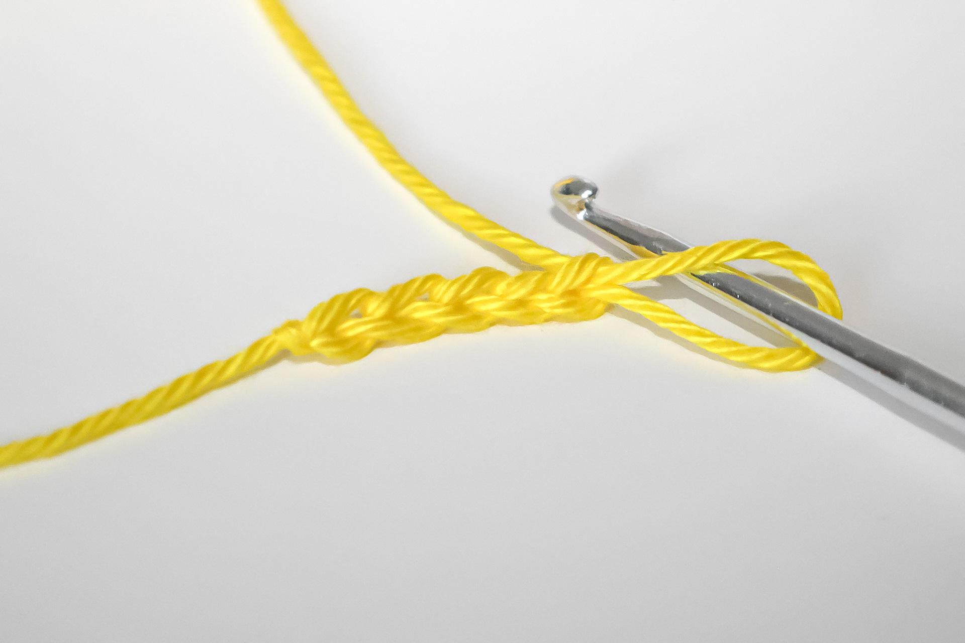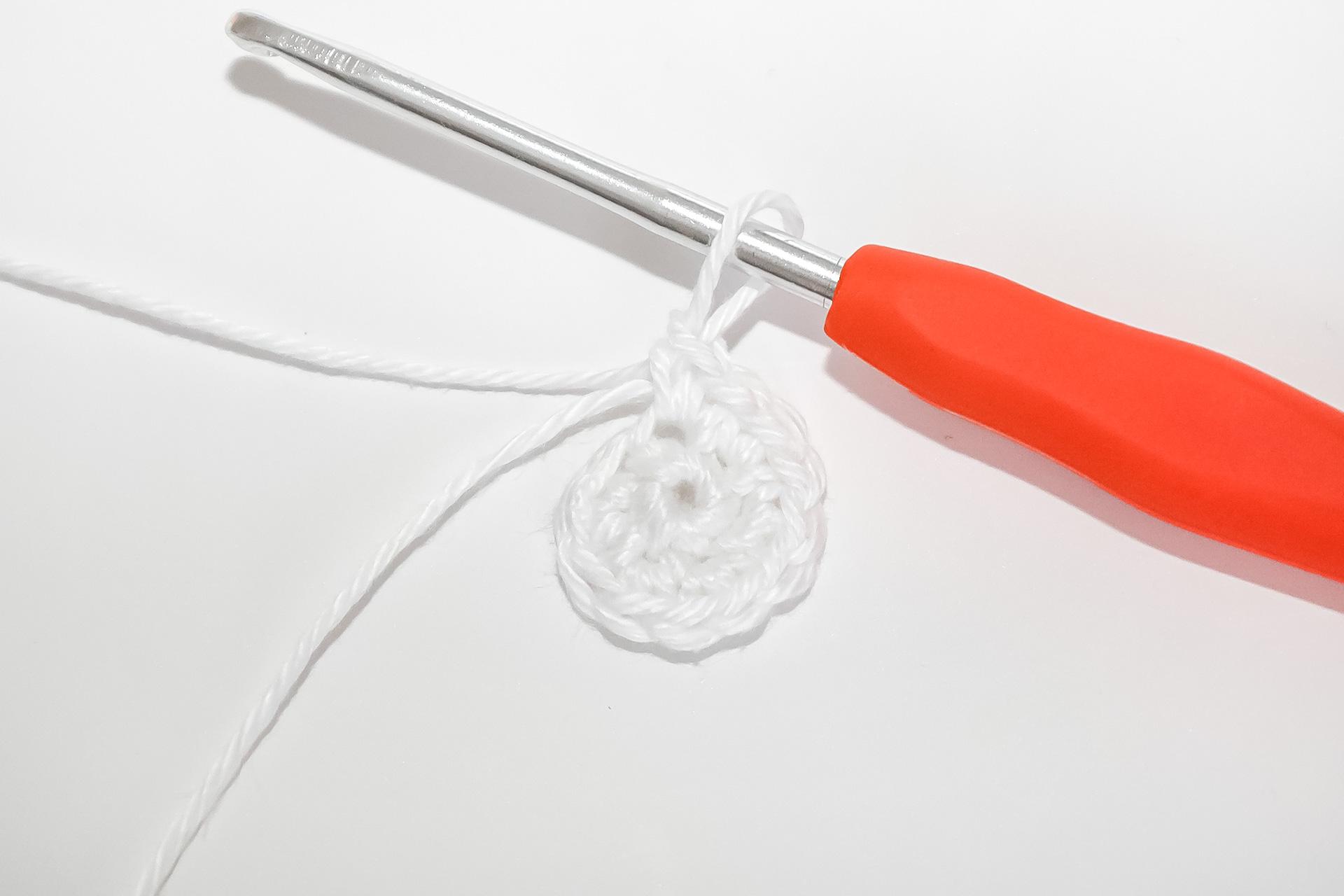 V- do jednoho oka háčkujeme 2KS