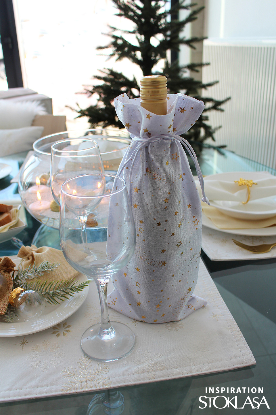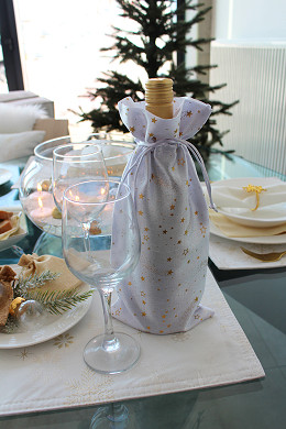 Vánoční dárkový pytlík ozdobený zlatým metalickým potiskem hvězdiček působí elegantně a luxusně. Je určený na zabalení lahví a jiných podlouhlých dárků. Pytlík je dostatečně vysoký, ať už se rozhodnete pro dárek s alkoholem nebo s domácí limonádou, ušetří vám čas při balení. Stahuje se pomocí kulatých saténových šňůrek, dárku dodá osobní kouzlo a půvab.
