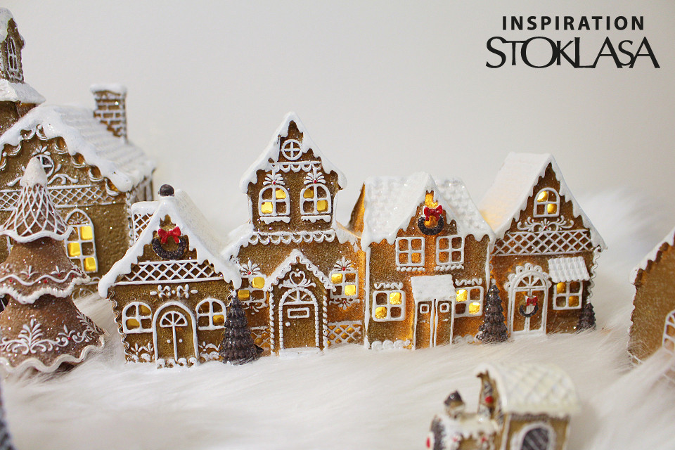 Vánoční domeček vyniká působivě zpracovanými detaily a věrohodně imituje perník. Je pokrytý třpytivými glitry, které vytváří dojem námrazy. Zútulní každý interiér a vnese do něj nádech nostalgie.