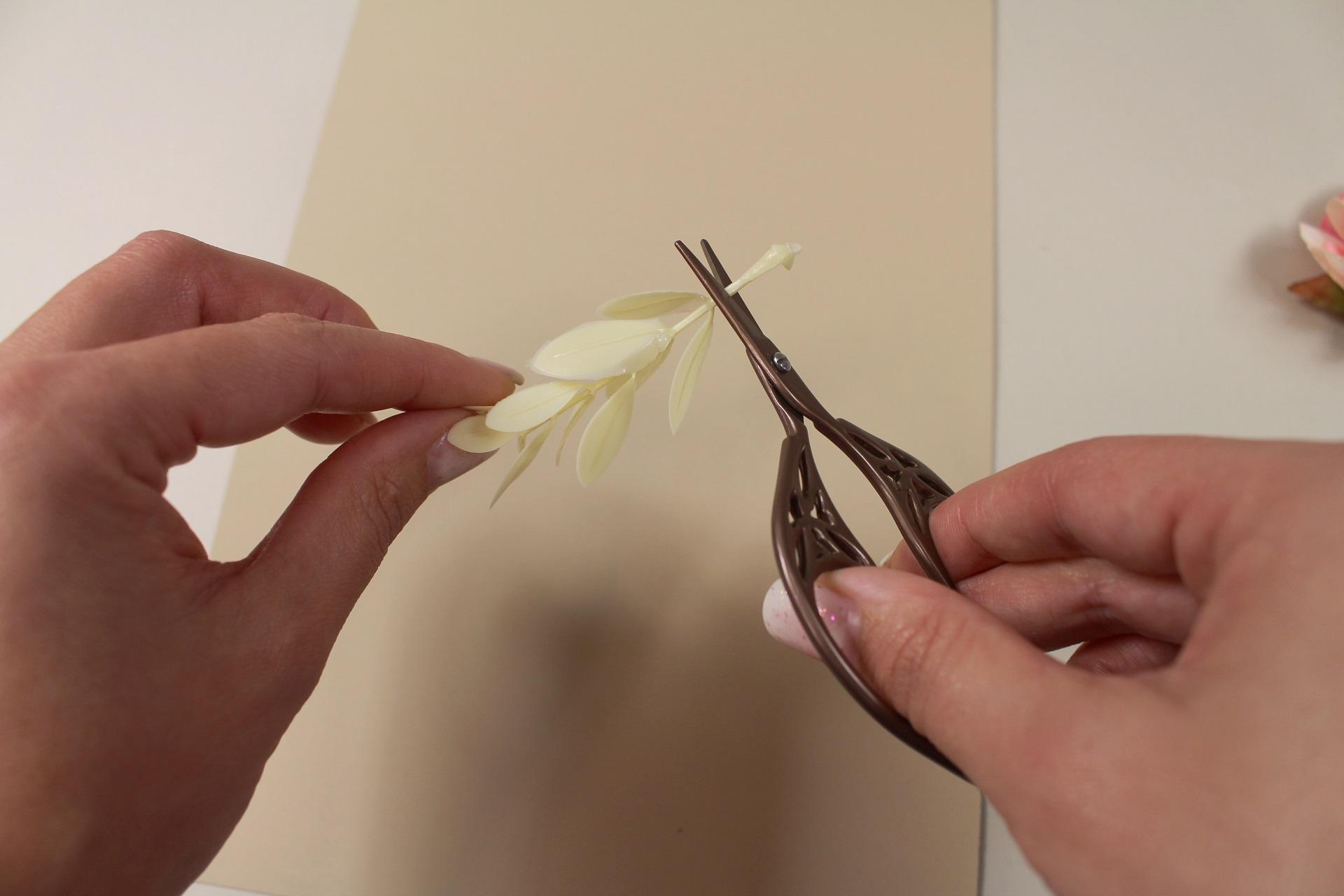 1. Nejprve si připravíme jednotlivé květy a pomocí štípacích kleští zkrátíme jejich stonky na požadovanou délku.