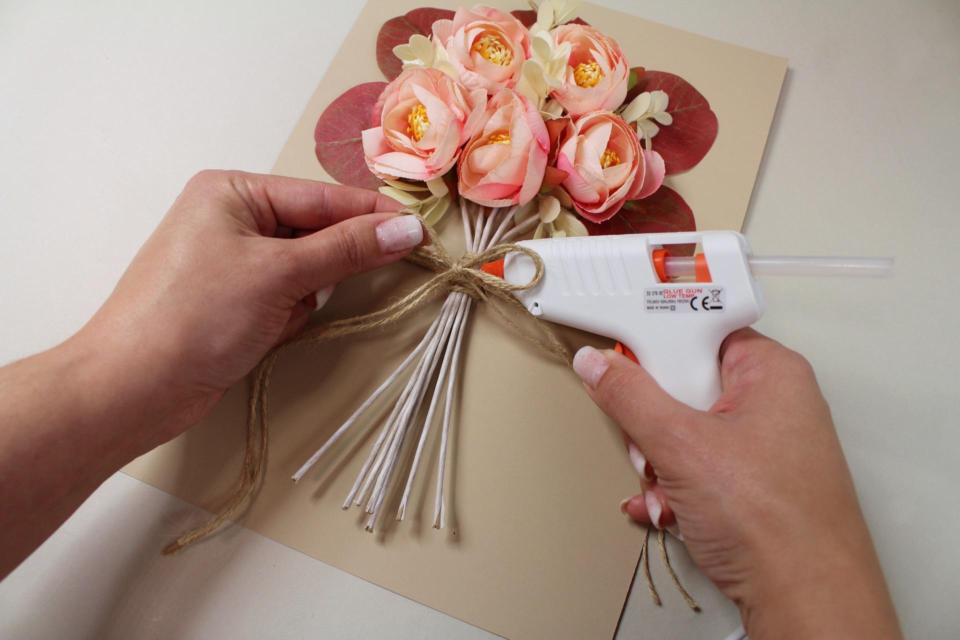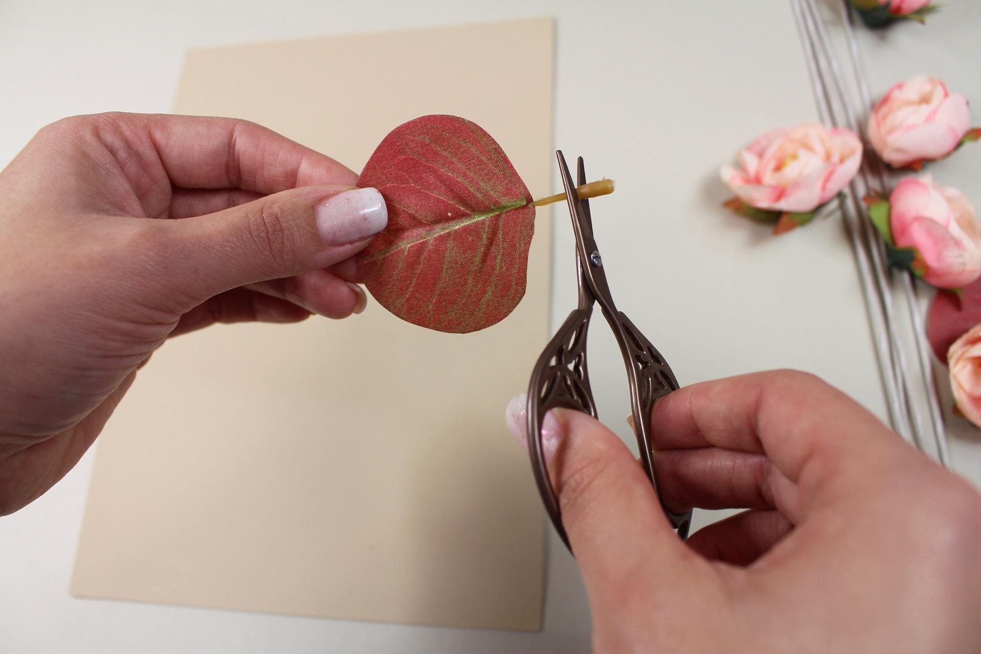 9. Připravíme si drátěné „stonky“, které budou tvořit spodní část kytice. Zkrátíme každý stonek na požadovanou délku podle velikosti přání.