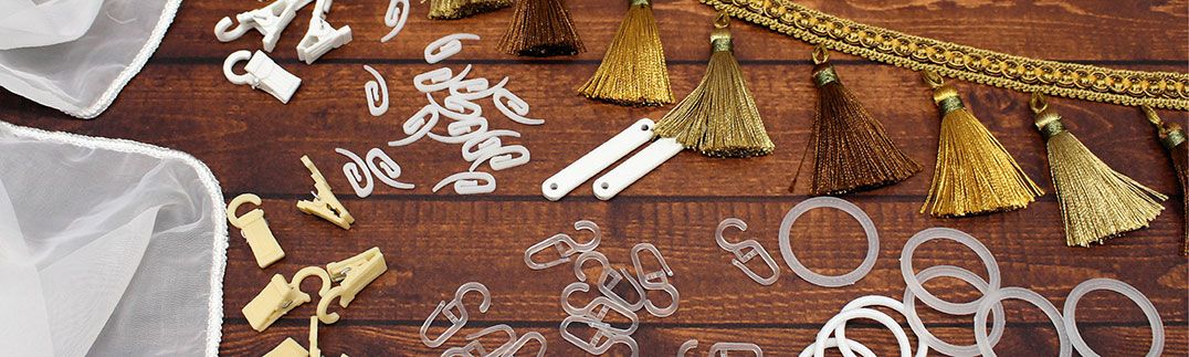 Pod pojmem záclonová galanterie najdete vše, co slouží k úpravě horní části záclon a jejich zavěšení: